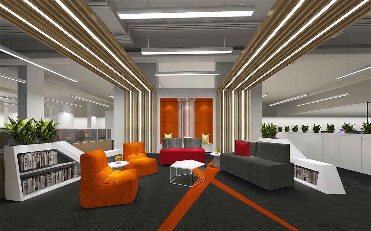 深圳百仟金融是一家金融服務性的公司,在對其寫字樓辦公室設計裝修時,考慮到該公司消費金融和汽車金融服務的業務特點,加洲為其設計了一套以現代科技,簡約時尚,符合年輕人現代化辦公環境,配色活躍,張揚不失沉穩。